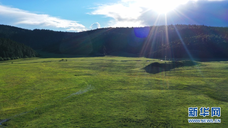航拍視角下的草甸(攝于8月27日)。新華網(wǎng) 趙普凡 攝