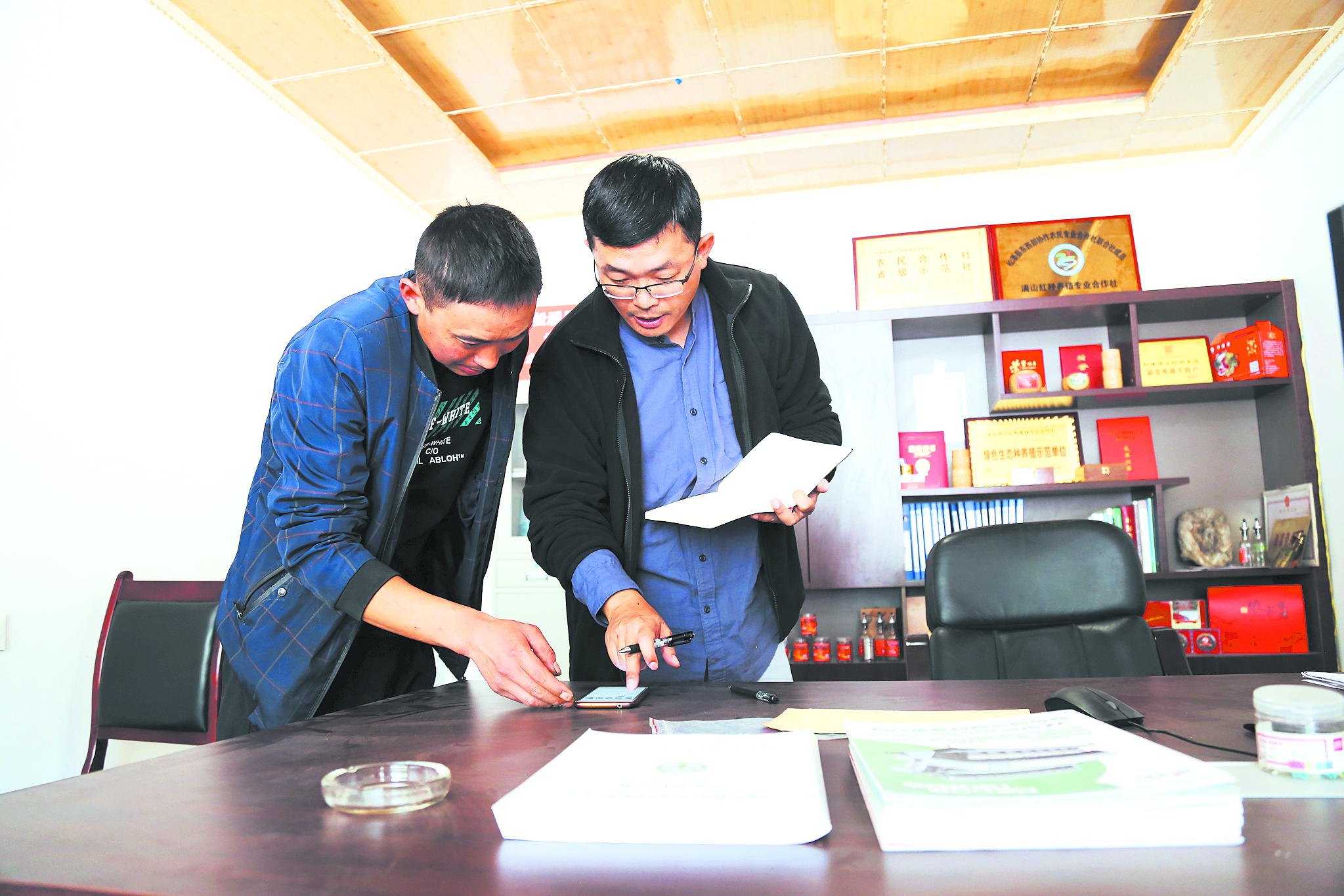 地里花椒采摘忙,村里花椒合作社也是一片繁忙,機器干燥、抽真空包裝、裝進產(chǎn)品盒、貼好地址準備發(fā)貨。在采訪中,盧洪有手機微信“叮咚”一聲,他立馬看了一下,“有人給你發(fā)紅包?”“紅包算啥子哦。今年有三成貨是通過網(wǎng)上銷售,每天,合作社工作人員都會把訂單信息發(fā)到合作社成員的微信群里?!泵鎸τ浾叩恼{(diào)侃,盧洪有顯得很自信。這樣的自信來自確實鼓起來的荷包。