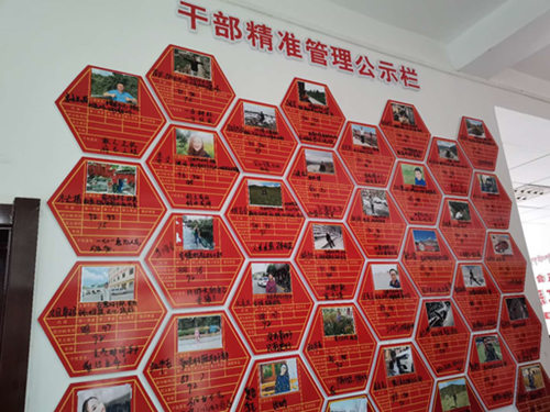 黨政辦公樓內(nèi)部,由幾十張黨員信息卡拼成的干部精準管理公示欄貼滿整面墻壁。信息卡上,每名黨員的工作任務一目了然,更有民主評議分數(shù)反映著不同黨員日常工作獲村民的滿意程度。