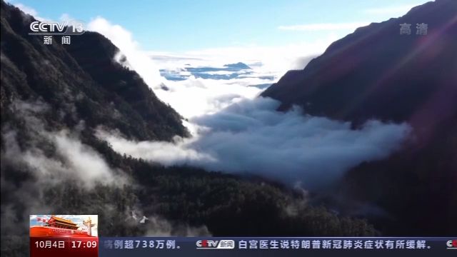 節(jié)日期間的海螺溝景區(qū)晴空萬里,海拔6410米的貢嘎山金銀峰,在藍(lán)天白云映襯下更顯巍峨壯麗。