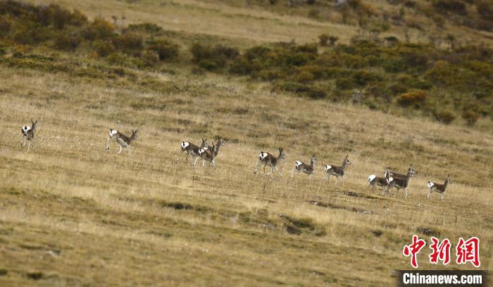 圖為臀部呈白色桃心的藏原羚排隊(duì)奔跑。三江源國(guó)家公園森林公安局 供圖