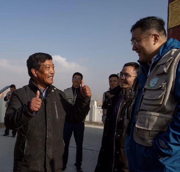 圖為青海省海南州共和縣恰卜恰鎮(zhèn)索爾加村的老支書扎西和中國太平洋產(chǎn)險青海分公司總經(jīng)理李稚林等人愉快地交談。