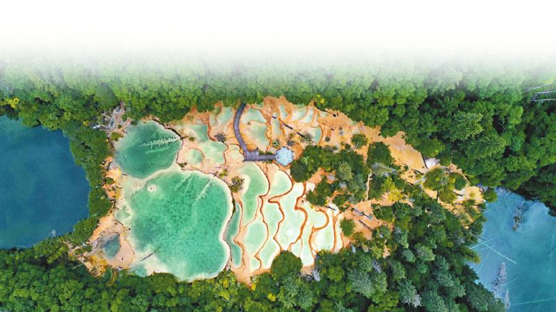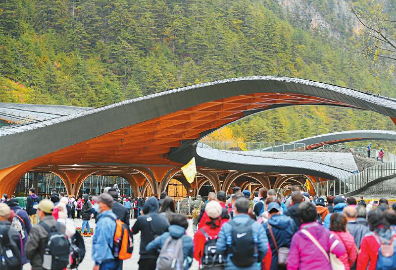 以景推城。在九寨溝,處處可見(jiàn)“生態(tài)優(yōu)先”的痕跡——生態(tài)擋墻間的動(dòng)物通道,游客腳下的生態(tài)棧道、景區(qū)外的旅游環(huán)保法庭……