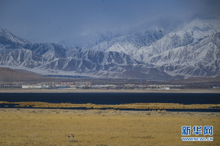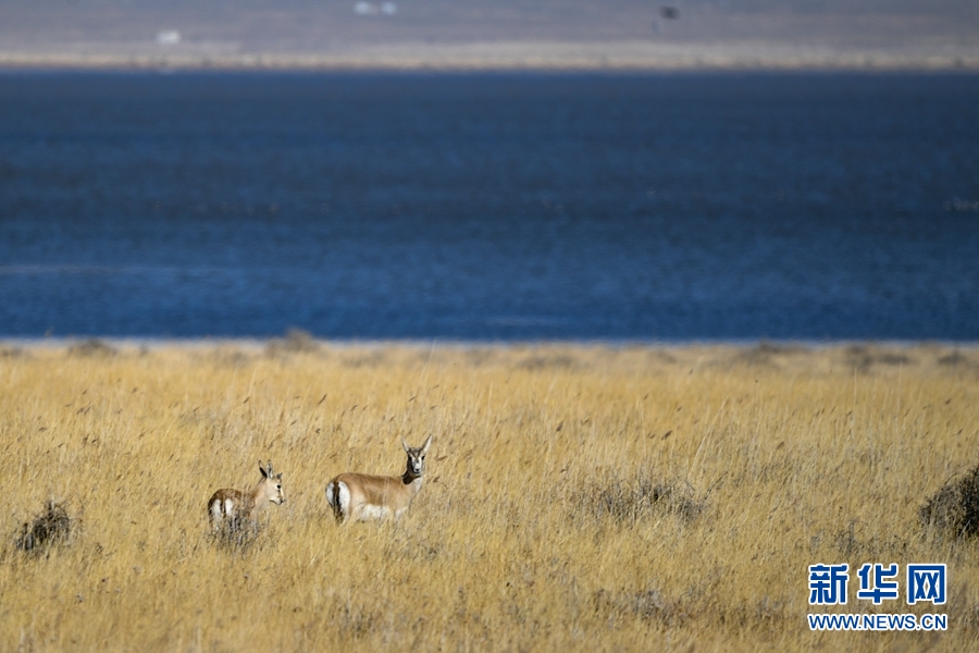 在都蘭湖國家濕地公園內拍攝到的鵝喉羚。(11月21日攝)新華網(wǎng) 潘彬彬 攝