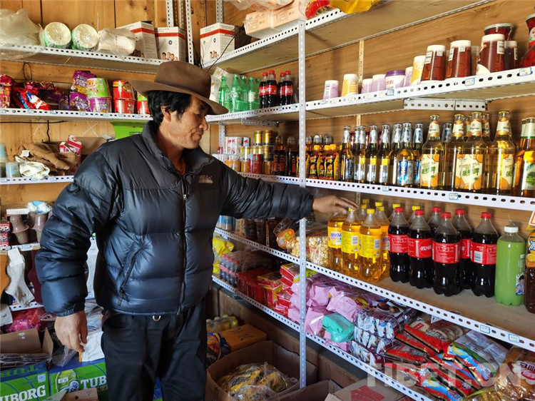 中國(guó)西藏網(wǎng)訊 12月11日,四川省甘孜藏族自治州理塘縣濯桑鄉(xiāng)漢戈村原貧困戶甲它一大早整理完大棚里的菜地,又忙著打理小賣部的貨物。