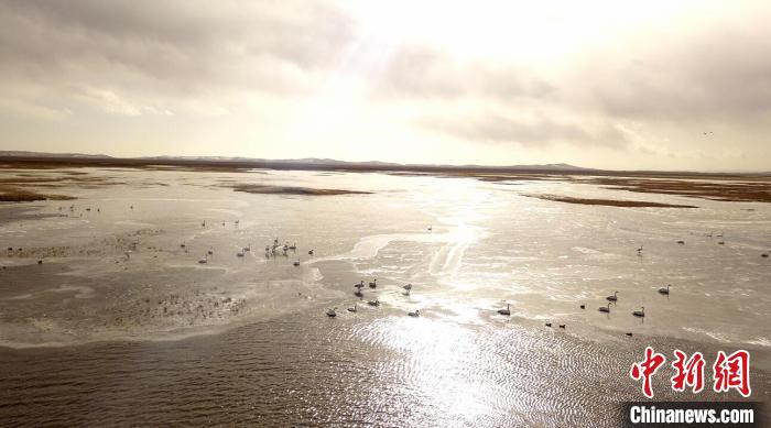 四川若爾蓋高原湖泊成為美麗的“天鵝湖”