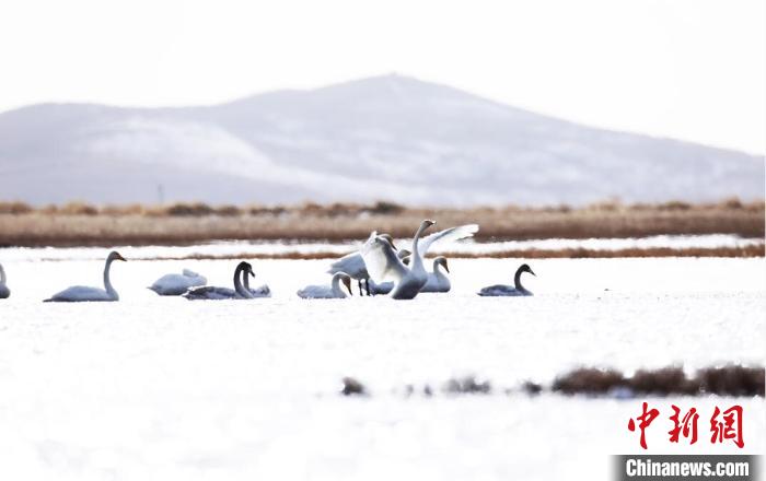 白天鵝飛抵若爾蓋棲息越冬。屈建清 攝