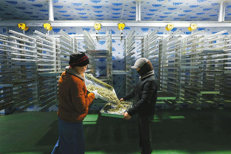 1月5日,松茸產業(yè)園的工人通過真空冷凍干燥設備加工凍干食用菌。尹鋼 攝