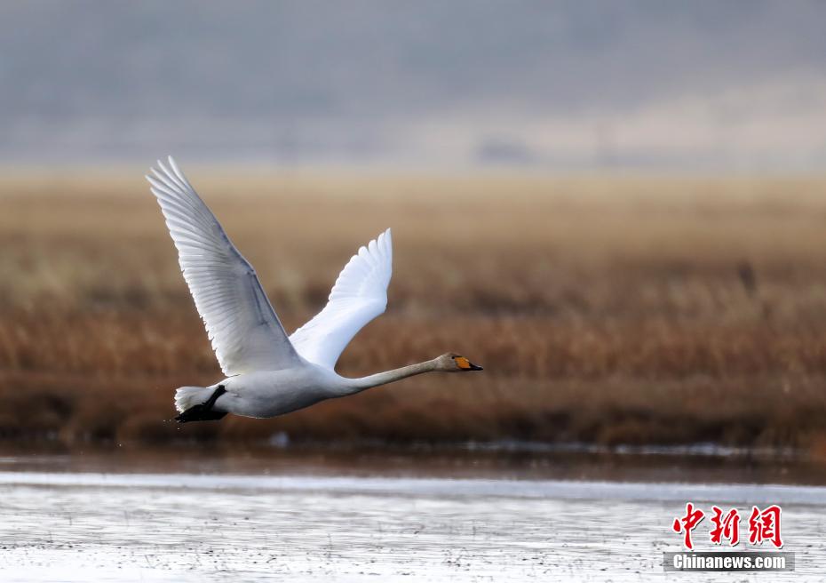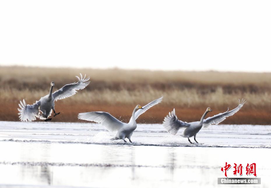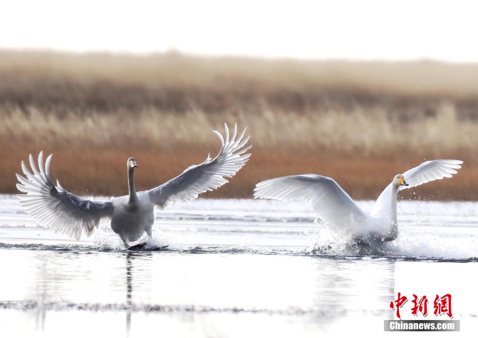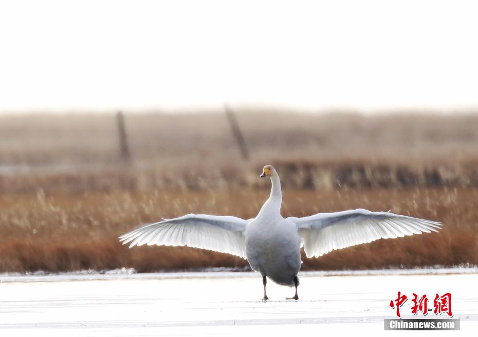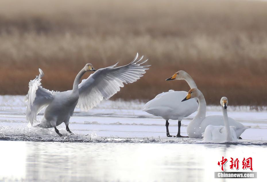 連日來,成群的野生大天鵝陸續(xù)飛臨四川省阿壩藏族羌族自治州若爾蓋縣高原小鎮(zhèn)麥溪鄉(xiāng)的洛賈瓊果河棲息越冬。這些跨越千里來此越冬的精靈讓洛賈瓊果河充滿了童話色彩,近百只天鵝在偌大的湖面上自由自在地覓食嬉戲,一會(huì)兒在天空翱翔,一會(huì)兒又成群結(jié)隊(duì)地在湖面上追逐,時(shí)而淺吟低唱,時(shí)而引吭高歌,時(shí)而振翅高飛,愜意十足,為冰封雪凍的高原濕地增添了些許靈動(dòng)與生機(jī),成為草原冰雪世界一道靚麗的風(fēng)景。