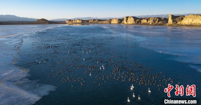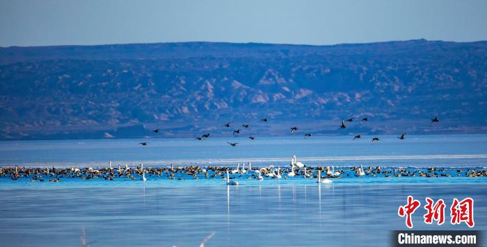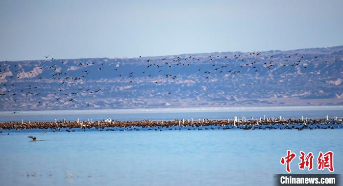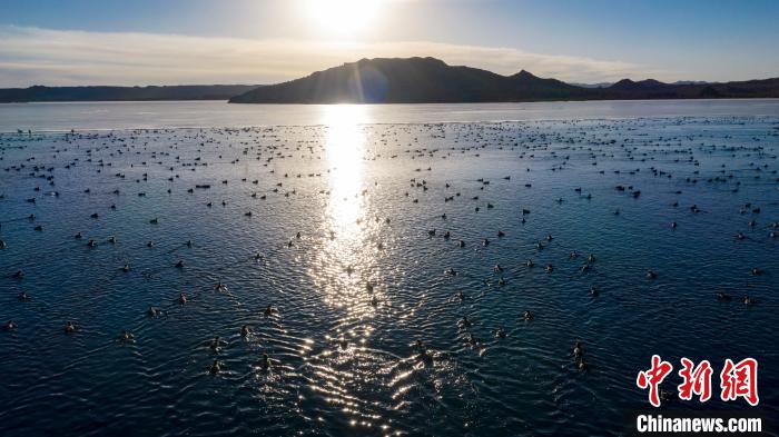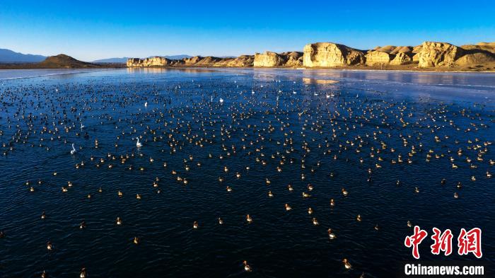 圖為上萬(wàn)只野生鳥(niǎo)類在湖中游蕩。烏席勒 攝