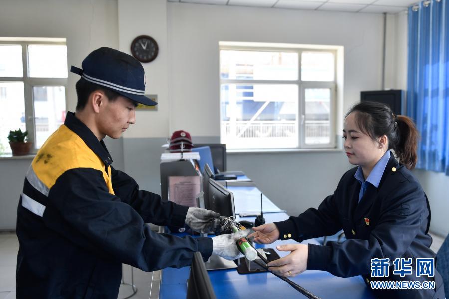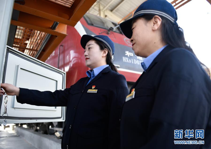 2月24日,在青藏鐵路公司西寧機務(wù)段整備車間,隔離開關(guān)班組成員賀霞(左)在工作中。新華社記者 張龍 攝