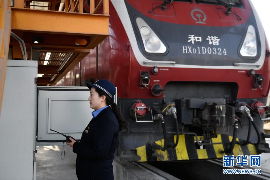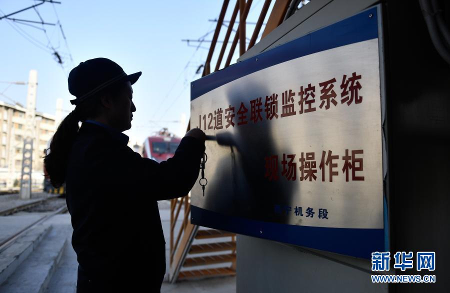 2月24日,在青藏鐵路公司西寧機務(wù)段整備車間,隔離開關(guān)班組成員賀霞在工作中。新華社記者 張龍 攝