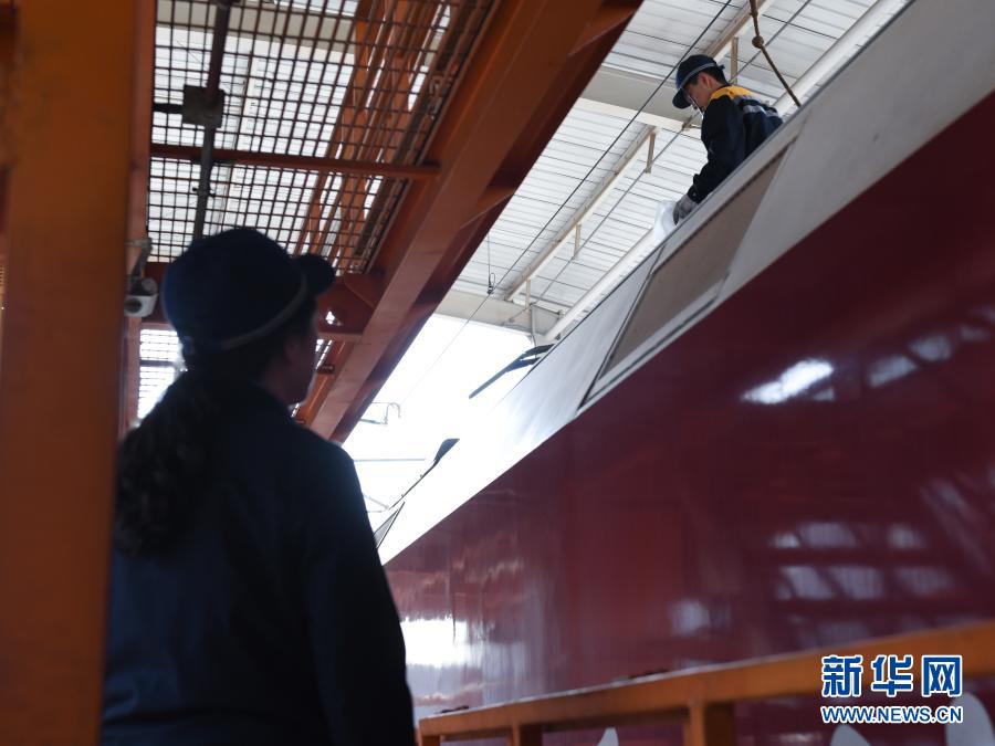 2月24日,在青藏鐵路公司西寧機務(wù)段整備車間,隔離開關(guān)班組成員賀霞(左)和王麗在工作中。新華社記者 張曼怡 攝