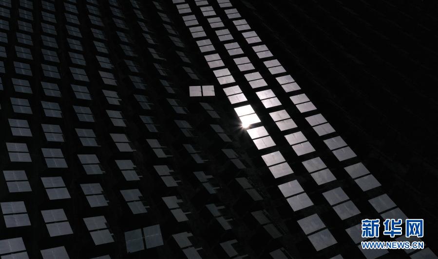 3月3日拍攝的位于青海省海南藏族自治州共和縣光伏產(chǎn)業(yè)園內(nèi)的一處塔式光熱發(fā)電項目(無人機照片)。 新華社記者 張宏祥 攝