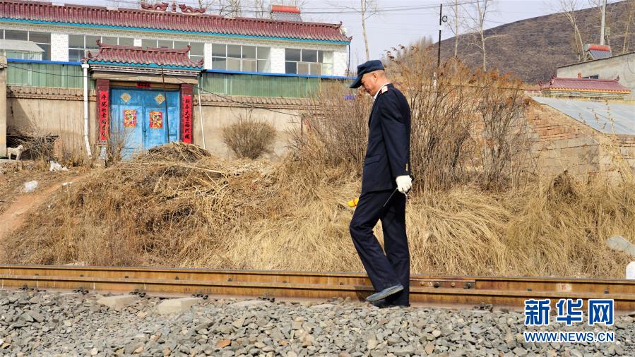 2月22日,王光華沿著鐵軌正在巡檢。新華社記者 嚴(yán)賦憬 攝