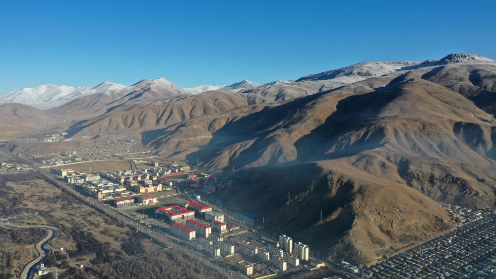 圖為2021年3月10日拍攝的玉樹市一角(地震時為扎西科臨時安置點(diǎn))。