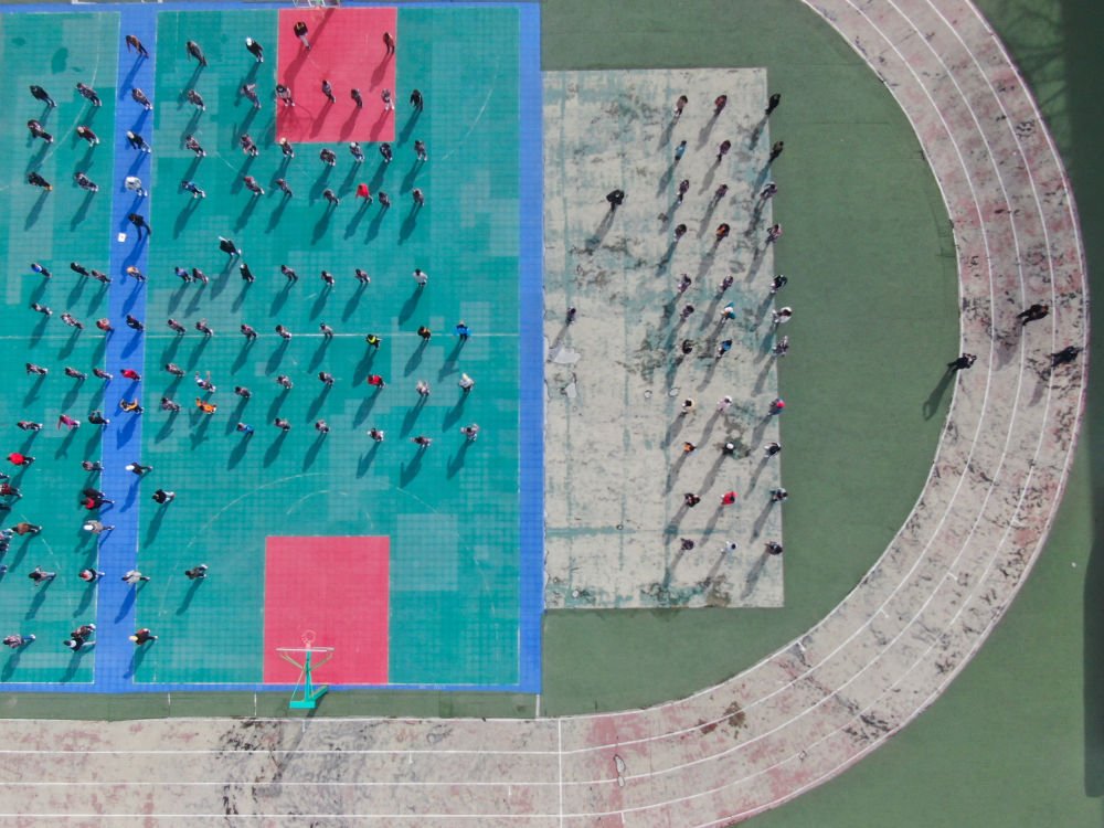 在青海省玉樹藏族自治州八一孤兒學(xué)校,學(xué)生們在進(jìn)行課間活動(2020年4月3日攝)。 新華社記者 張龍 攝