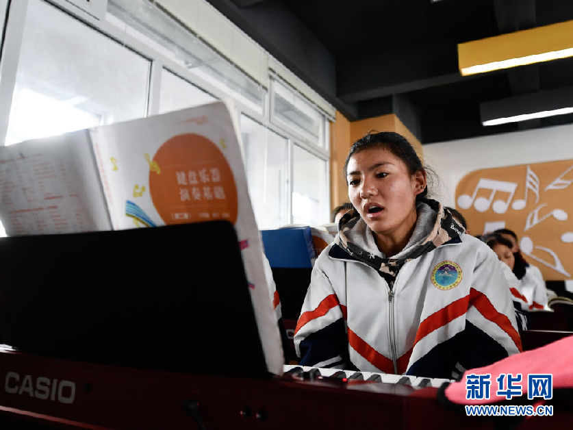 3月16日,在果洛藏族自治州職業(yè)技術(shù)學(xué)校,2020級(jí)學(xué)前教育專業(yè)學(xué)生楊央在上音樂課。新華社記者 張龍 攝