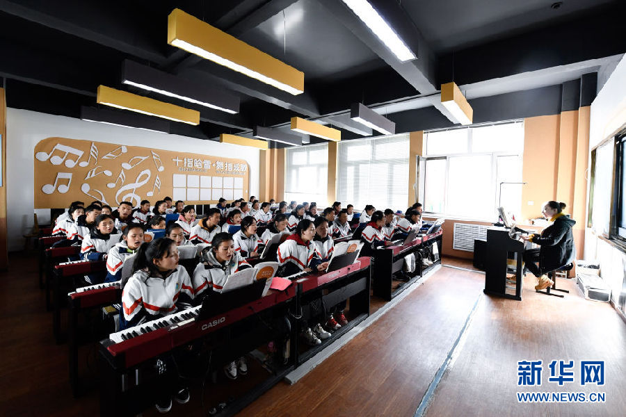 3月16日,在果洛藏族自治州職業(yè)技術(shù)學(xué)校,2020級(jí)學(xué)前教育專業(yè)學(xué)生在上音樂課。新華社記者 張龍 攝