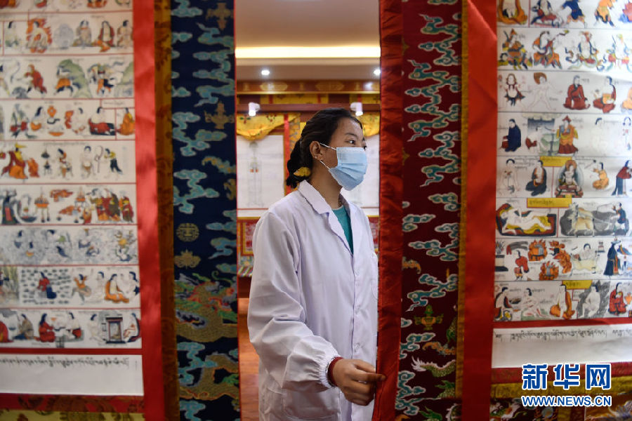 3月16日,在果洛藏族自治州職業(yè)技術(shù)學(xué)校,2020級(jí)藏醫(yī)醫(yī)療與藏藥專業(yè)學(xué)生才讓措通過藏醫(yī)典籍唐卡學(xué)習(xí)。新華社記者 張龍 攝