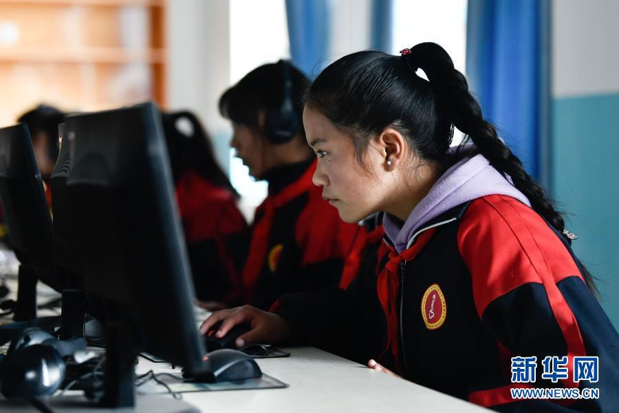 3月17日,在果洛藏族自治州甘德縣崗龍鄉(xiāng)寄宿制中心小學(xué),學(xué)生在上計算機(jī)課。新華社記者 張龍 攝