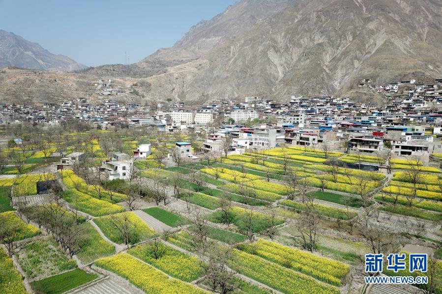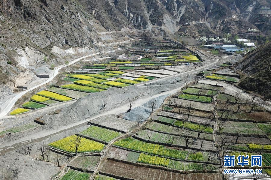 這是3月17日在舟曲縣城關(guān)鎮(zhèn)境內(nèi)拍攝的油菜花(無(wú)人機(jī)照片)。新華社記者 范培珅 攝