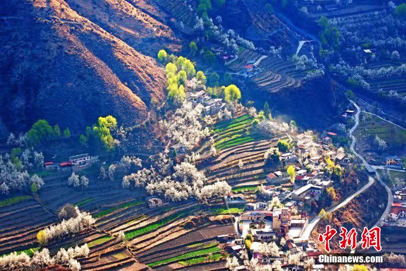 梨花叢中的村寨。 代永清 攝