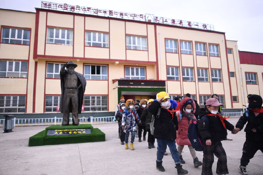 索加鄉(xiāng)寄宿小學(xué)是青海邊遠(yuǎn)牧區(qū)鄉(xiāng)鎮(zhèn)小學(xué)變化的一個縮影。治多縣教育局局長美少措毛介紹,“十三五”以來,當(dāng)?shù)卣浴敖逃亲畲竺裆钡睦砟?,健全以政府投入為主、多渠道籌集教育經(jīng)費的體制,持續(xù)推進學(xué)校標(biāo)準(zhǔn)化建設(shè),充分滿足牧民群眾子女“就近入學(xué)”“上好學(xué)”的需求,實現(xiàn)了適齡兒童入學(xué)率100%。