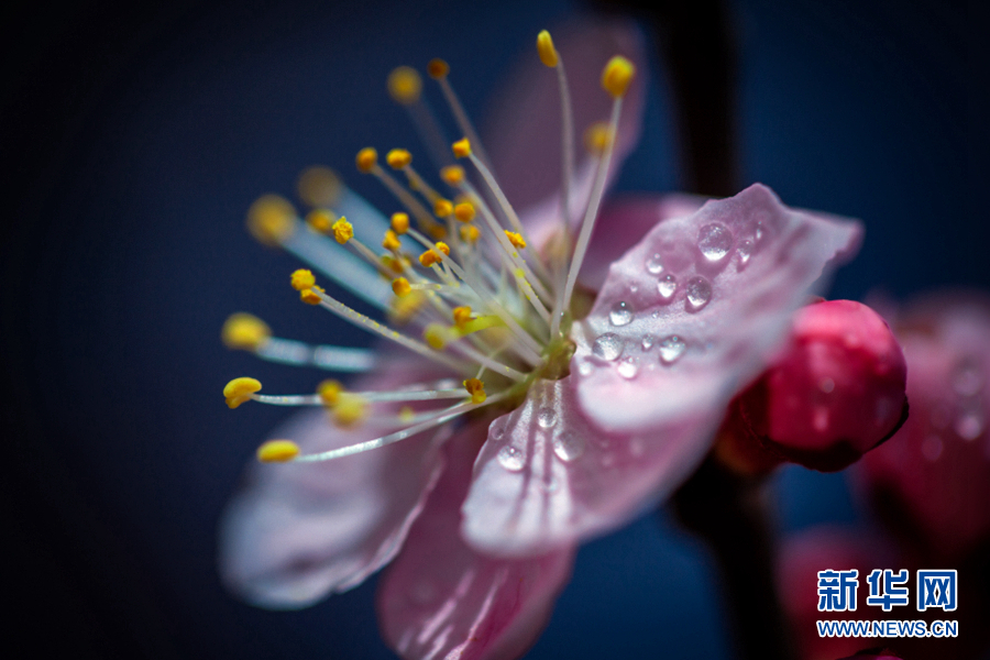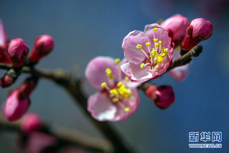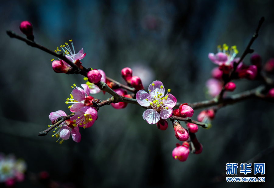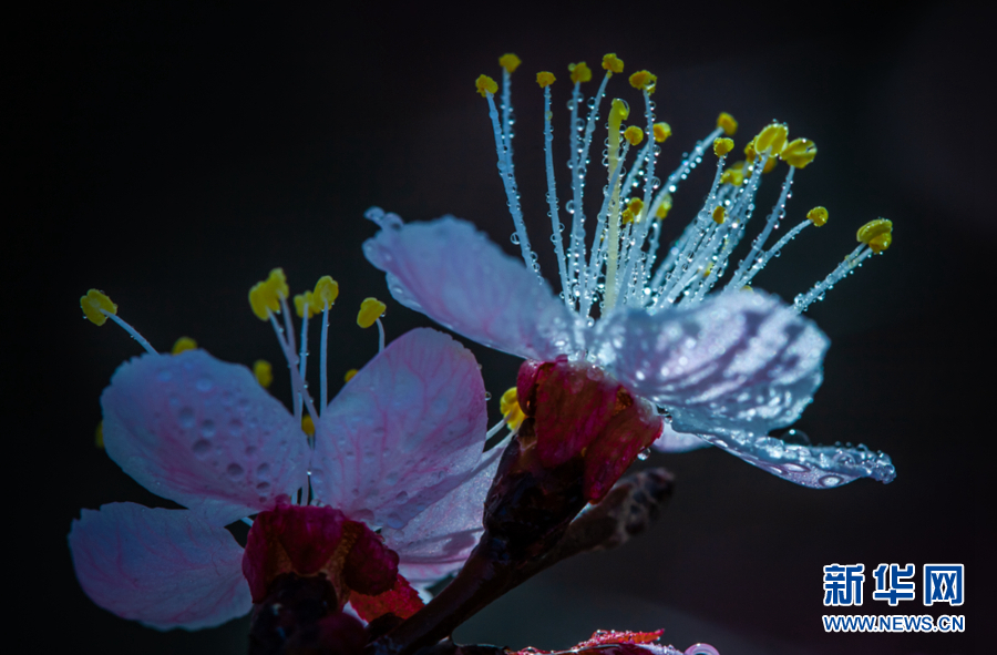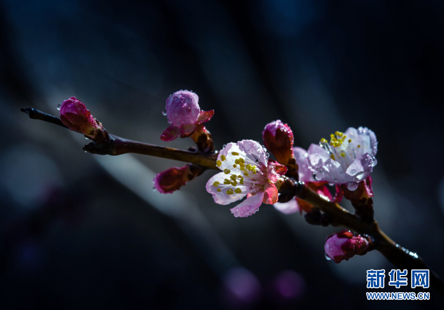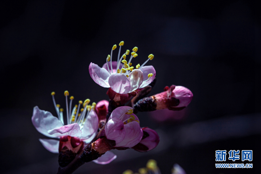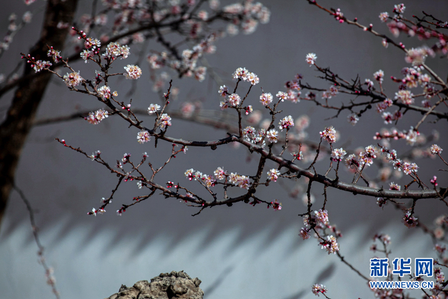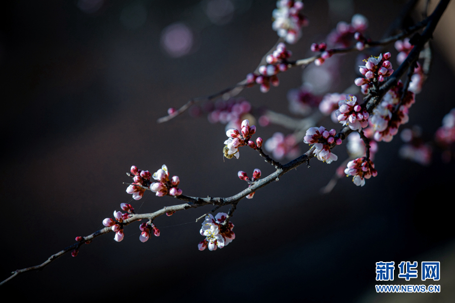 陽光照耀下,杏花張開了笑臉,花蕊悄悄地探出了頭。新華網 陳錫明 攝