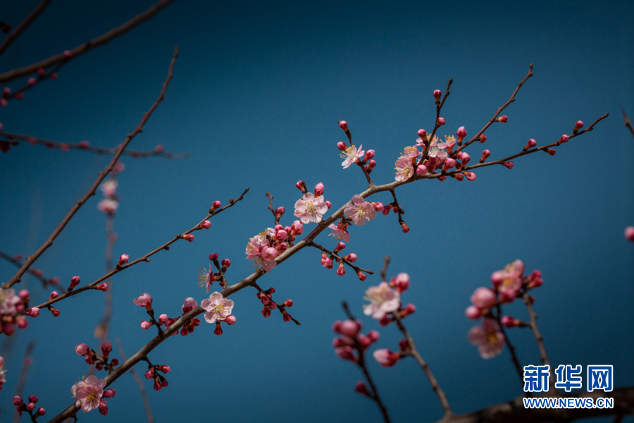 迎春綻放的杏花,一株株如覆霜雪,一團團耀眼明亮。新華網 陳錫明 攝
