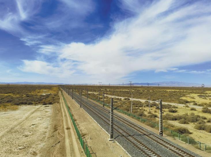 鐵路兩旁的綠化帶一直向戈壁內(nèi)延伸。劉法營(yíng) 攝