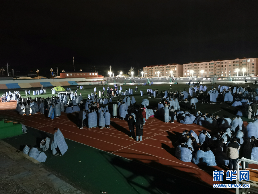 5月22日凌晨,在青海省果洛藏族自治州州府瑪沁縣,果洛州民族高級(jí)中學(xué)的學(xué)生在操場避險(xiǎn)。新華社發(fā)