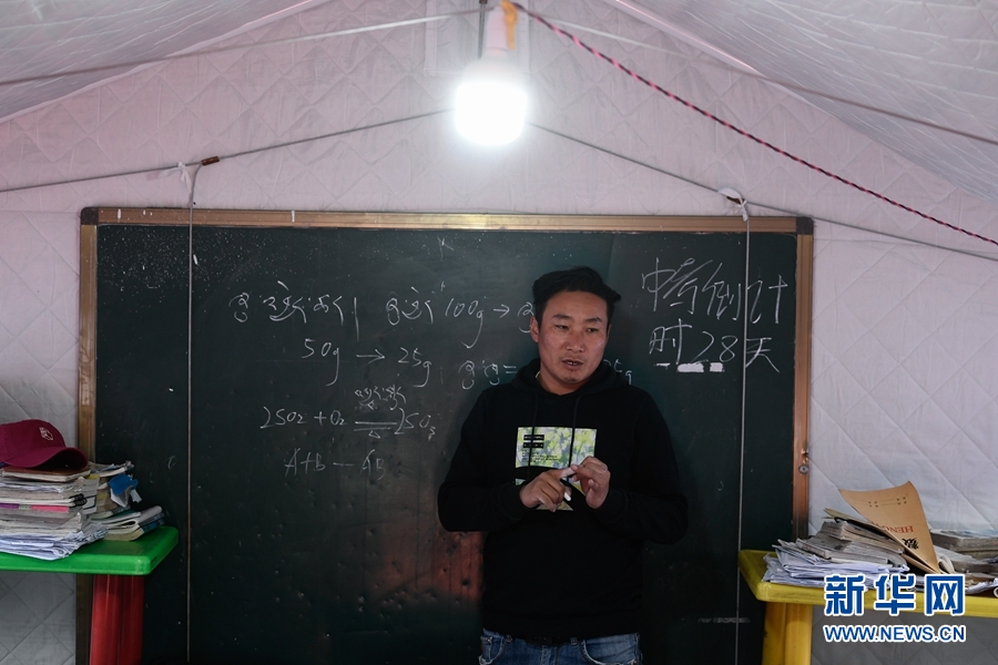 5月23日,瑪多縣民族寄宿制中學學生在帳篷教室上課。新華社記者 張龍 攝