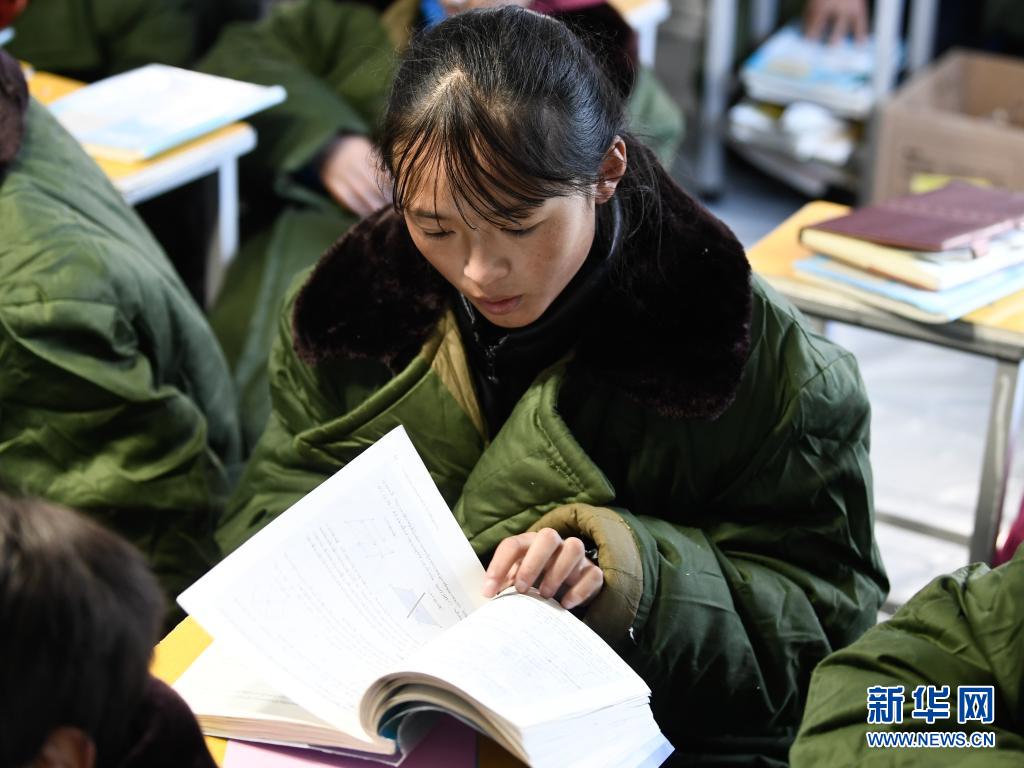 5月24日,曲邁卓瑪在瑪多縣民族寄宿制中學帳篷教室里讀書。新華社 張龍 攝