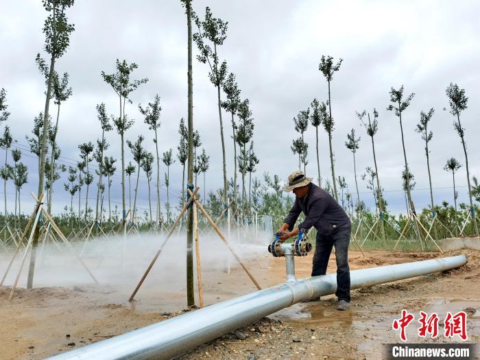 正如何香龍說(shuō)的“三分種,七分護(hù)”,栽樹完成后,為了能讓樹苗存活,澆水是必不可少的工作?!案珊?、風(fēng)大,都是我們這里植被生存面臨的難關(guān),為此,青海省林草局投資200萬(wàn)元鋪設(shè)了灌溉系統(tǒng),每棵樹特地用三腳架固定起來(lái)了。”何香龍說(shuō)。