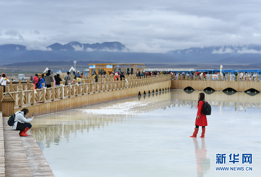 游客在茶卡天空壹號景區(qū)內(nèi)游覽。新華網(wǎng) 卡婭梅朵 攝