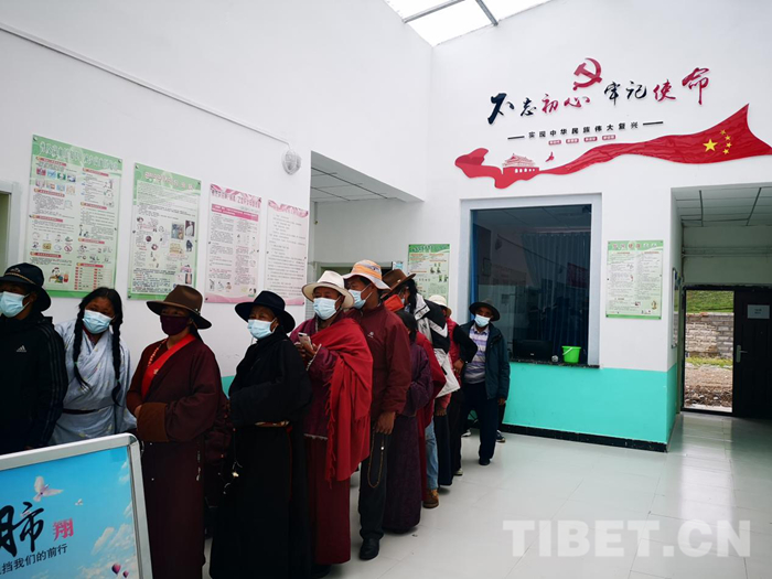 圖為達(dá)日縣建設(shè)鄉(xiāng)排隊(duì)就診的群眾 (組委會(huì)供圖)