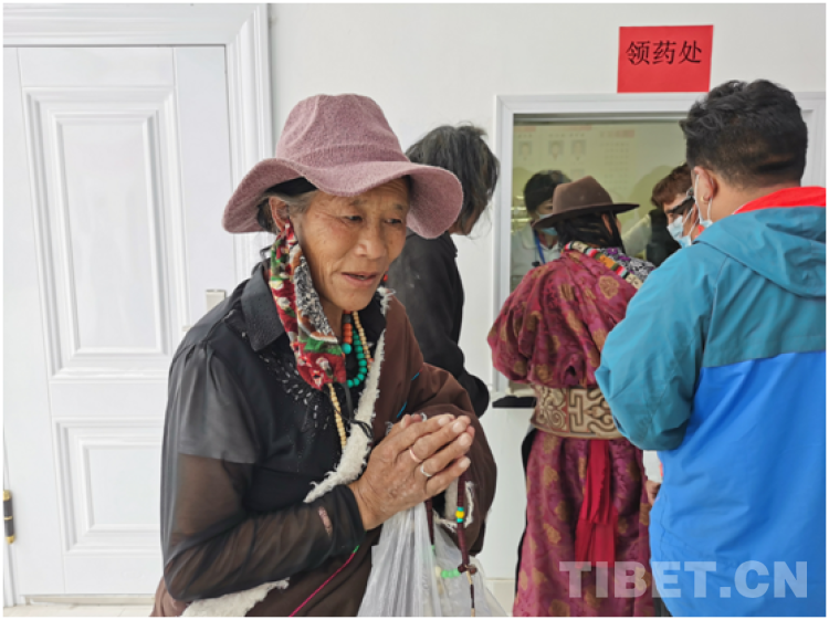一名50多歲的藏族老人在領到免費的藥品后,拉著志愿者的手感動得流下眼淚。她說:你們太好了,看病給藥不要錢,謝謝你們!