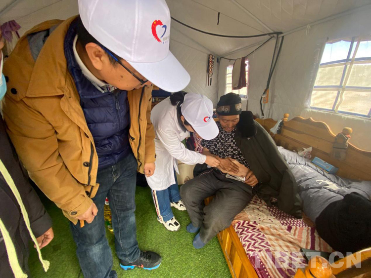 兩天來(lái),瑪多余震不斷、陰晴不定,醫(yī)生們克服各種不適,兵分幾路,分別在縣醫(yī)院、噶旦村瑪查理安置點(diǎn)、扎陵湖鄉(xiāng)安置點(diǎn)、黃河鄉(xiāng)唐格瑪村醫(yī)療點(diǎn)進(jìn)行義診和帶教查房。除此之外,由6名專家組成的醫(yī)療小組還走進(jìn)7戶當(dāng)?shù)鼐用窦抑?,帶著藥品和食用油、棉被等生活用品,給病患之家送去溫暖。