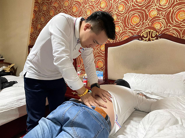 在寶貴的休息時(shí)間里給多少團(tuán)隊(duì)成員扎過(guò)針,常有才沒數(shù)過(guò),“估計(jì)有二三十人,或者你去群里問(wèn)問(wèn)。”帥氣的他笑呵呵地說(shuō)。