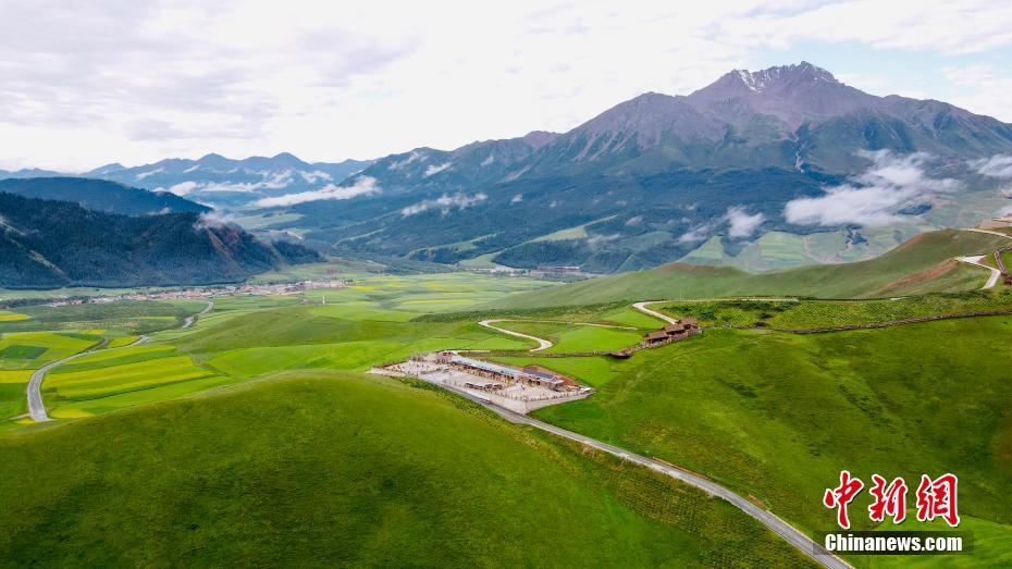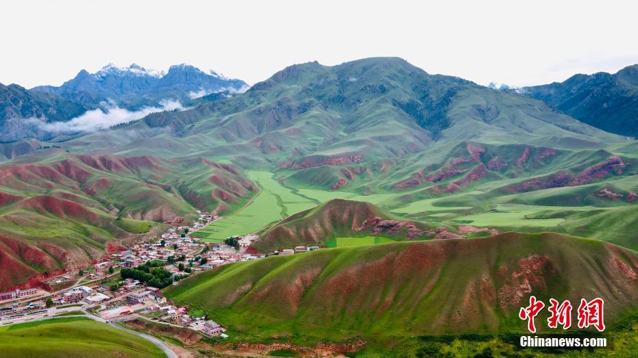 7月11日,航拍夏日的祁連山國家公園青海片區(qū)。綠意蔥蔥的祁連林海與遠處一座座連綿不斷的雪山,構(gòu)成了一幅美麗畫卷。(無人機照片) 中新社記者 李江寧 攝