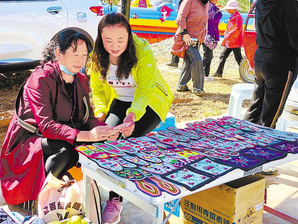 游客正在購(gòu)買當(dāng)?shù)靥厣止に嚻?。欒雨?攝