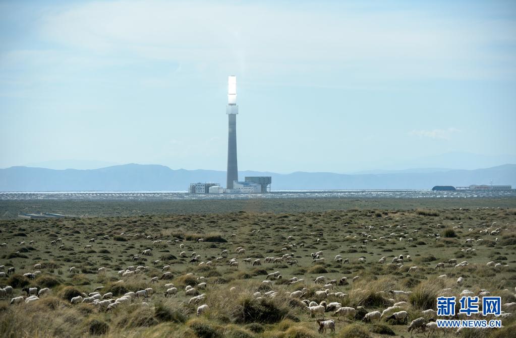 7月8日在青海省海南藏族自治州共和縣光伏產(chǎn)業(yè)園拍攝的一處塔式光熱發(fā)電項目。新華社 張曼怡 攝