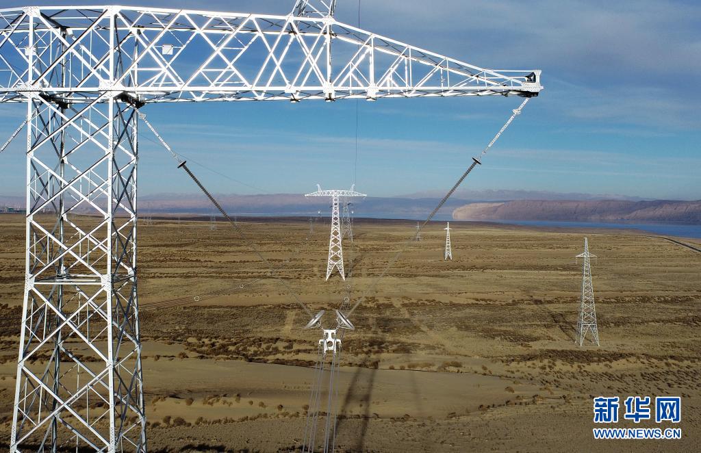 2020年12月27日拍攝的青豫特高壓直流工程青海段。新華社 王國棟 攝
