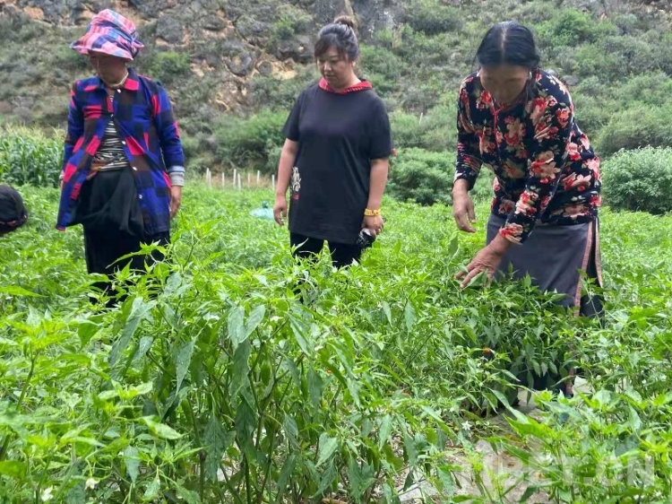 圖為技術(shù)人員在樹椒地里實(shí)地查看樹椒長(zhǎng)勢(shì)