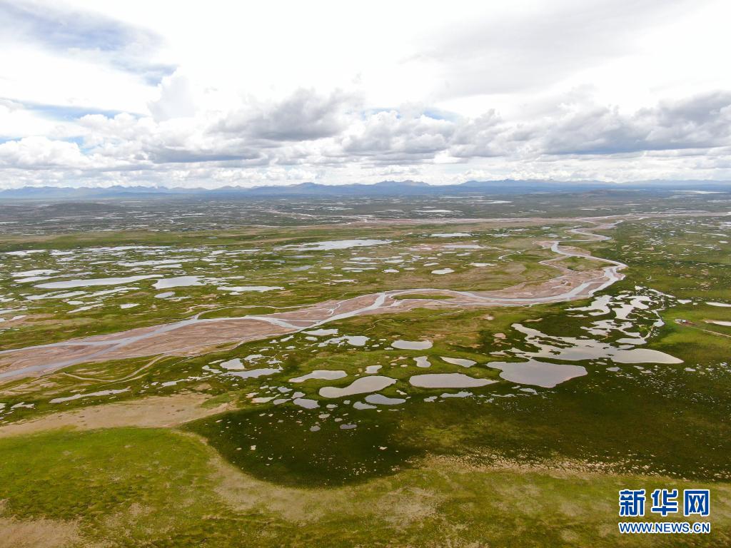 這是7月23日拍攝的長(zhǎng)江源地區(qū)的查旦濕地(無(wú)人機(jī)照片)。新華社記者 張龍 攝