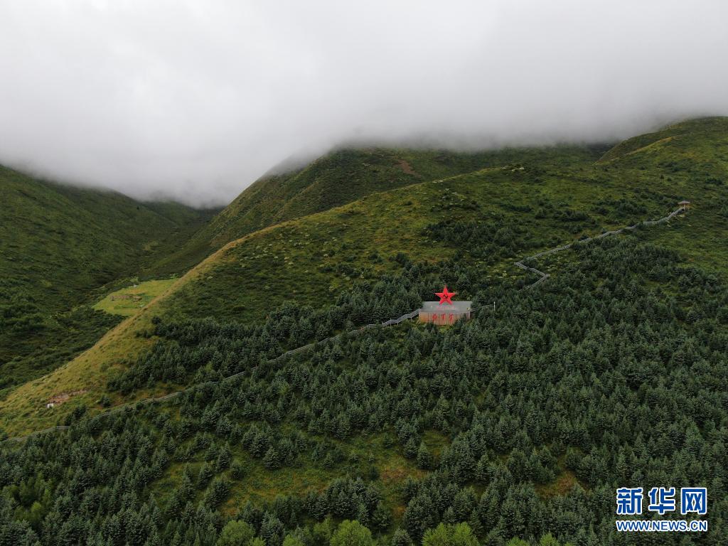 8月8日在青海省果洛藏族自治州班瑪縣境內(nèi)拍攝的一處觀景臺(無人機照片)。新華社記者 李占軼 攝