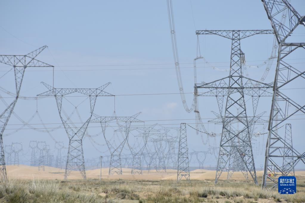 這是9月1日拍攝的位于青海省海南藏族自治州共和縣的青豫直流工程輸電線路。新華社記者 解統(tǒng)強 攝