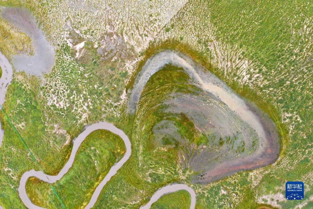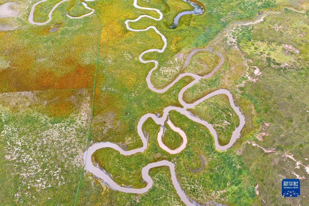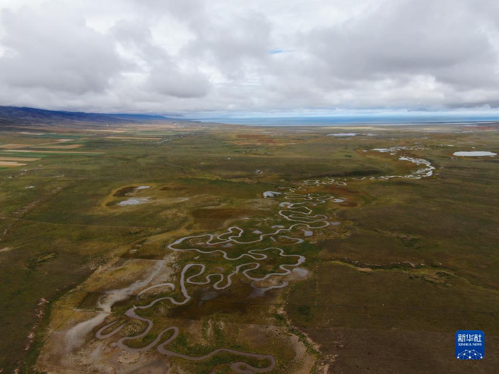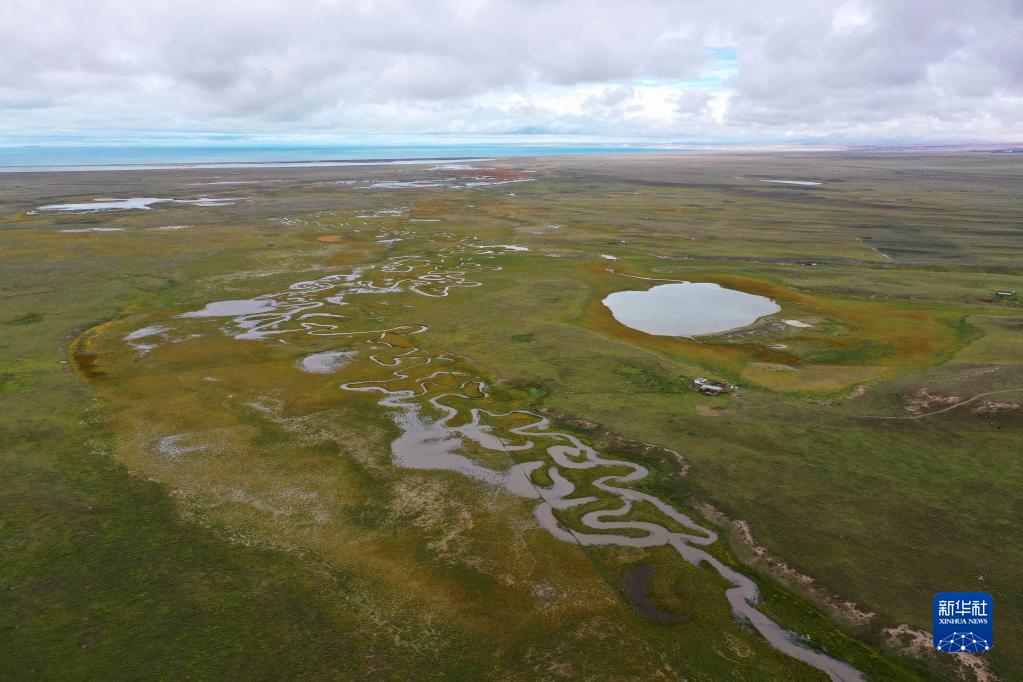 這是9月15日拍攝的青海湖畔的倒淌河(無人機(jī)照片)。新華社記者 邢廣利 攝