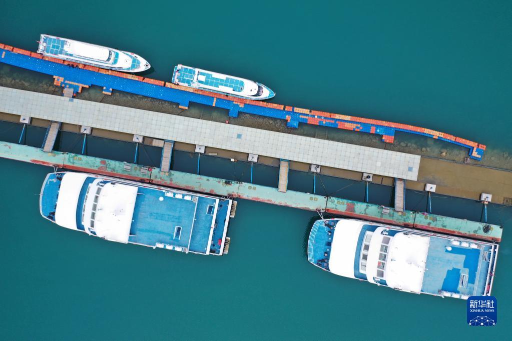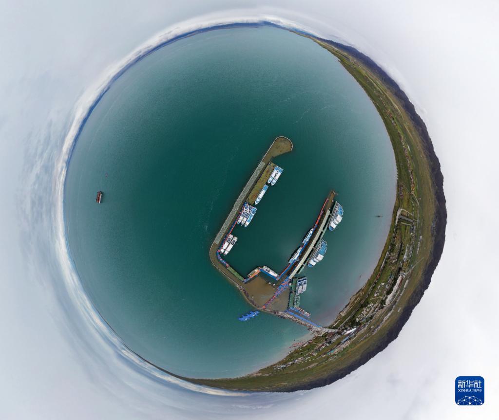 這是9月15日拍攝的青海湖上停泊的船只(無人機(jī)照片)。新華社記者 邢廣利 攝